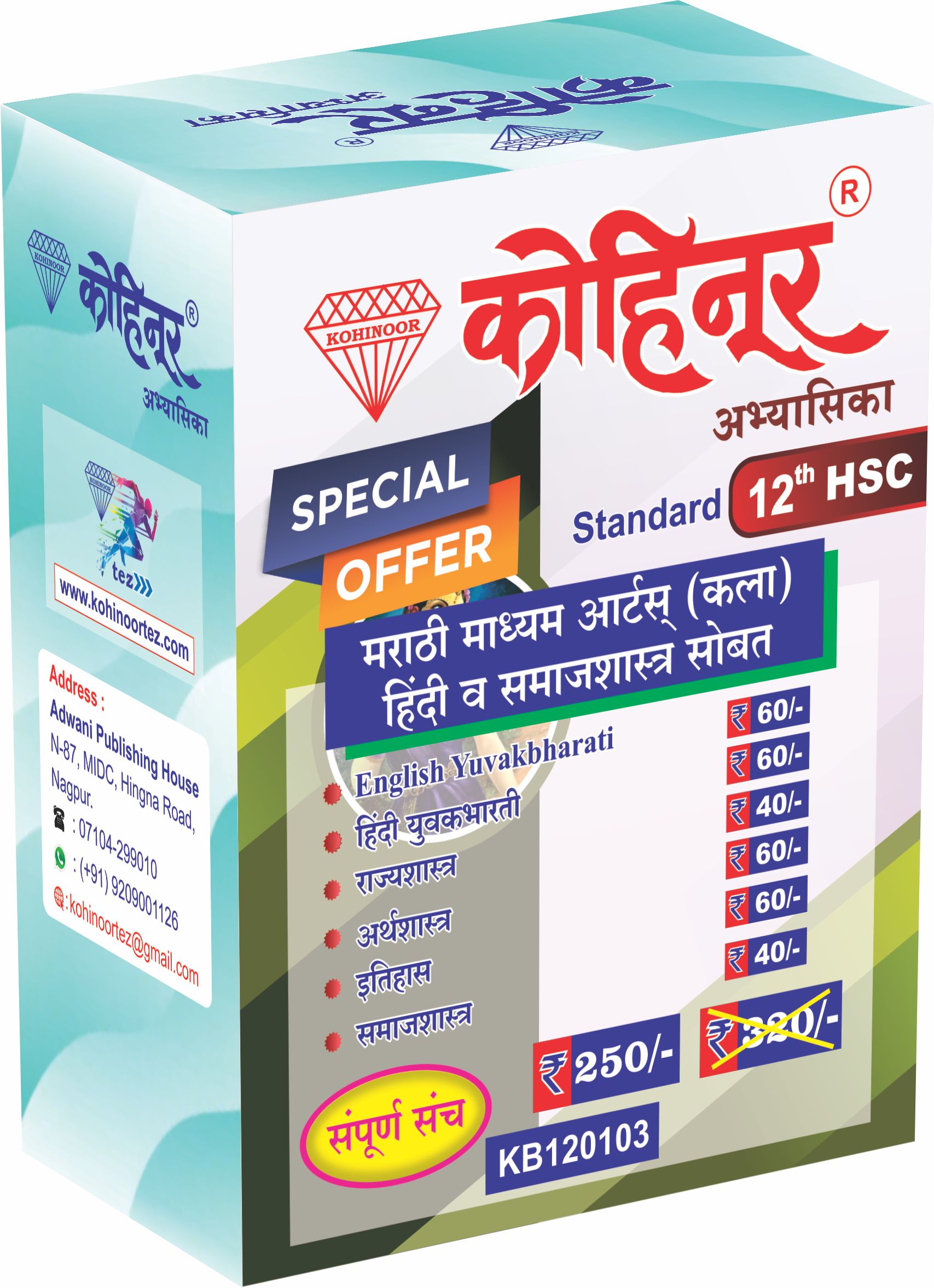 कोहिनूर अभ्यासिका – इयत्ता 12वी (मराठी माध्यम, आर्ट्स – हिंदी व समाजशास्त्र सोबत) कोहिनूर अभ्यासिका इयत्ता 12वी आर्ट्स (कला) मराठी माध्यमातील विद्यार्थ्यांसाठी तयार करण्यात आलेला एक अभ्यासपूरक आणि मार्गदर्शक स्वरूपाचा संच आहे. या संचामध्ये हिंदी व समाजशास्त्र या दोन महत्त्वाच्या विषयांचा समावेश असून, महाराष्ट्र राज्य मंडळाच्या (HSC) अभ्यासक्रमानुसार प्रश्नोत्तरांची रचना करण्यात आलेली आहे. प्रत्येक अध्यायात संकल्पनांची स्पष्ट मांडणी, परीक्षेत विचारले जाणारे प्रश्नांचे प्रकार आणि उत्तर लिहिण्याची योग्य पद्धत दिलेली आहे.