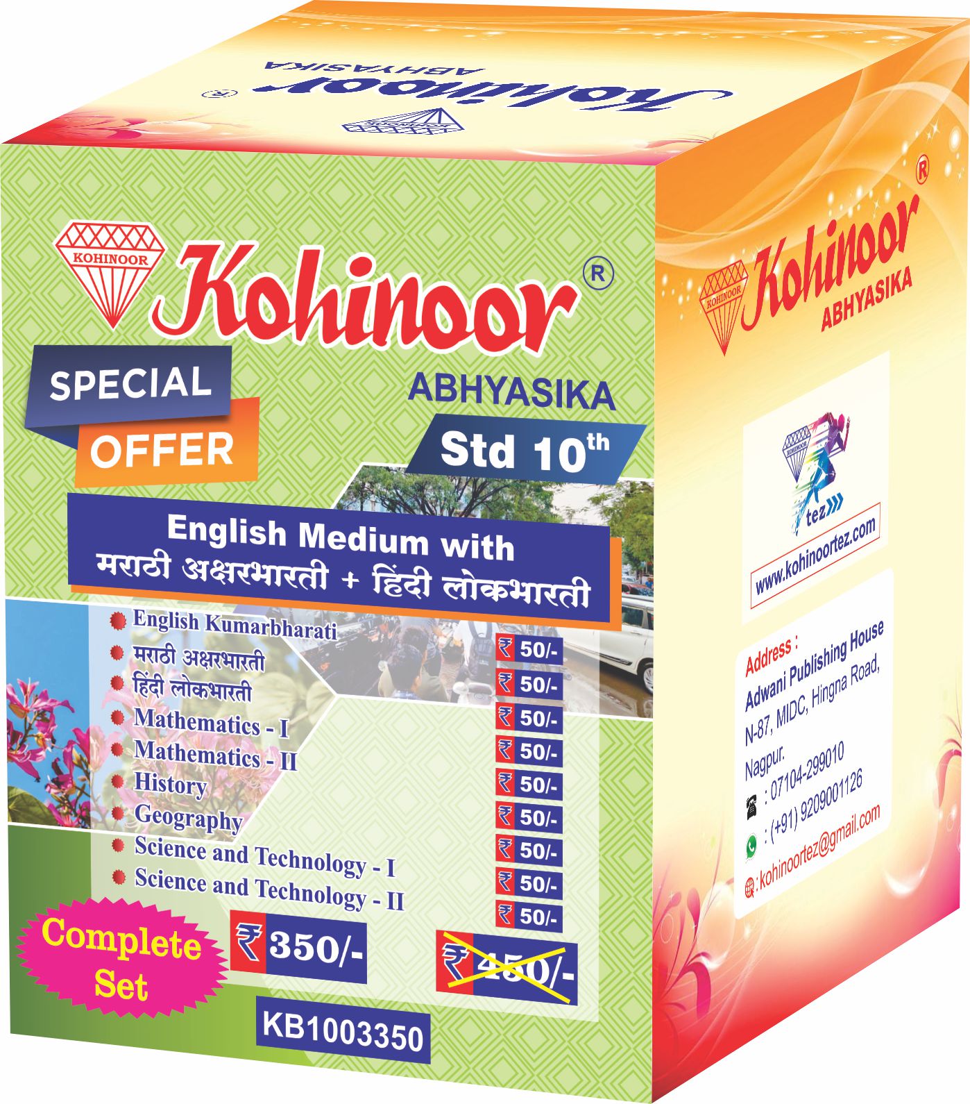 Overall, Kohinoor Abhyasika Std. 10 English Medium with मराठी अक्षरभारती and हिंदी लोकभारती is a reliable and time-saving learning solution. With all subjects included in one complete set, it supports systematic study, better revision, and improved performance in the SSC board examinations.