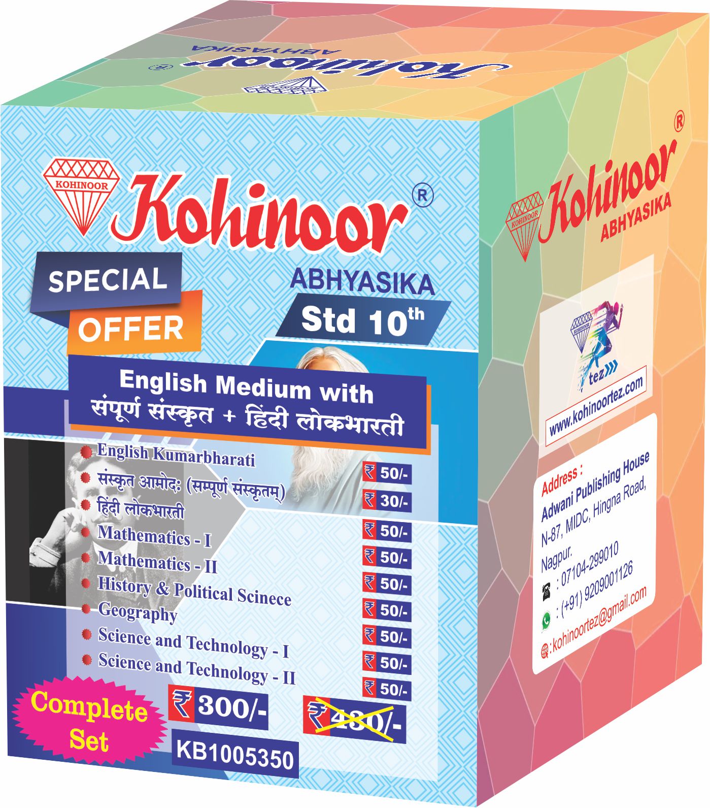 Overall, Kohinoor Abhyasika Std. 10 English Medium with संपूर्ण संस्कृत and हिंदी लोकभारती is a reliable and time-saving study solution. With all subjects included in one complete set, it helps students follow a systematic study routine and perform better in the SSC board examinations.