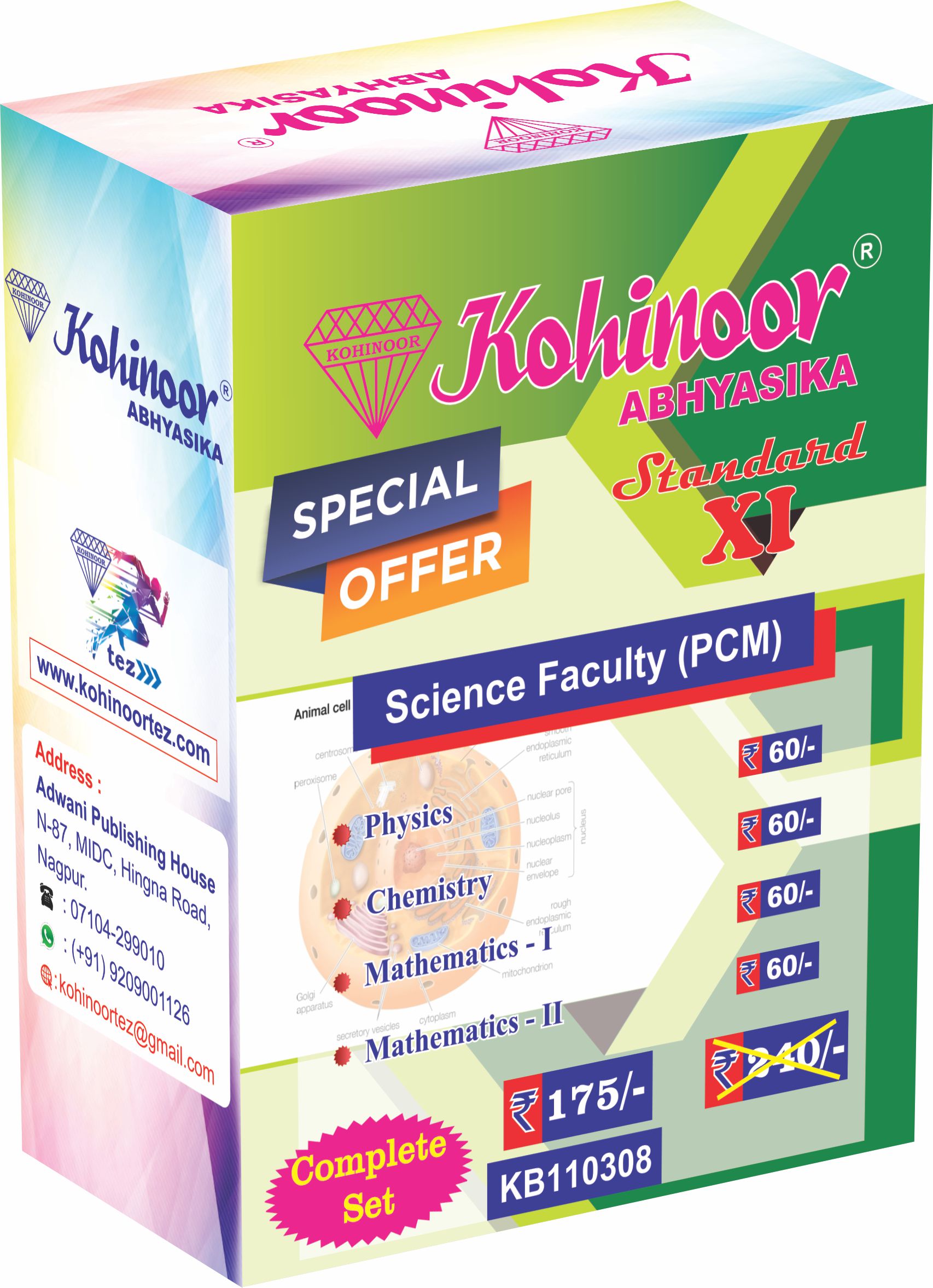 The Kohinoor Abhyasika Science Faculty (PCM) complete set for Standard 11 is designed according to the latest Maharashtra State Board (HSC) syllabus. It covers the three core subjects — Physics, Chemistry, and Mathematics (Part I & II) — to provide a strong academic base for science students.