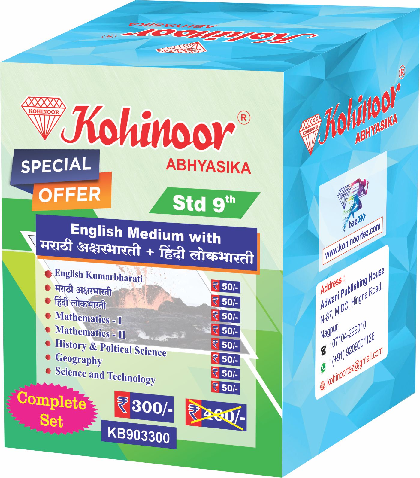 Overall, Kohinoor Abhyasika Std. 9 English Medium with Marathi Aksharbharti and Hindi Lokbharti is a dependable academic companion for the entire year. With all major subjects included in one complete set, it supports regular study, easy revision, and confident preparation for school tests and final exams.