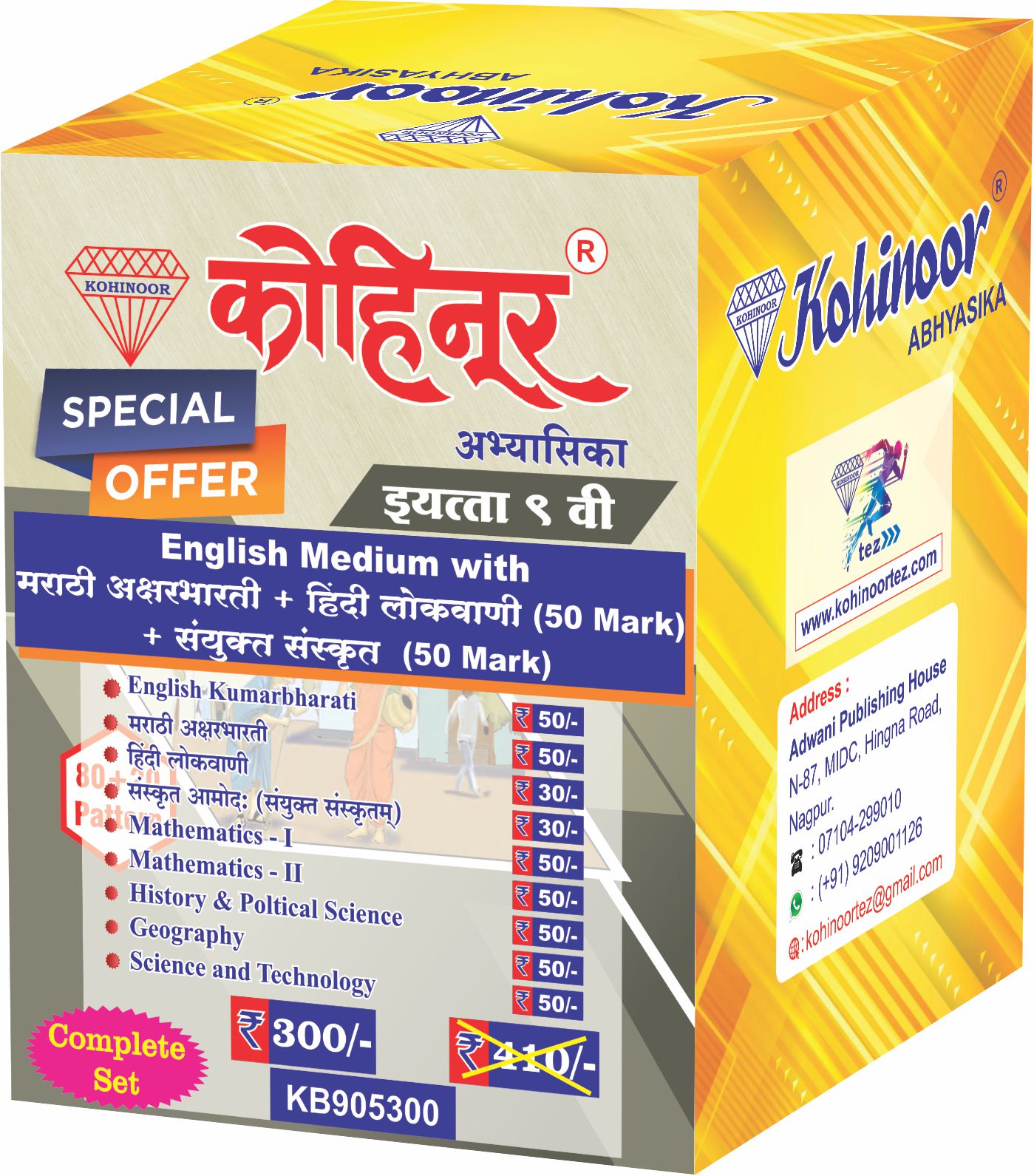 Overall, Kohinoor Abhyasika Std. 9 English Medium with Marathi Aksharbharti, Hindi Lokvani, and Sanyukt Sanskrit is a well-balanced study pack for the entire academic year. With all major subjects included in one set, it saves time, reduces confusion, and helps students stay focused, confident, and well-prepared for school tests and final examinations.