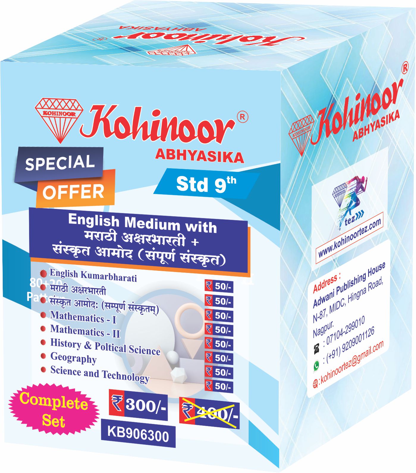 Overall, Kohinoor Abhyasika Std. 9 English Medium with Marathi Aksharbharti and Sanskrit Amod offers a reliable and complete study solution for students aiming for consistent academic progress. By covering languages and core subjects together in a single set, it supports steady learning, better understanding, and stronger preparation for school exams.