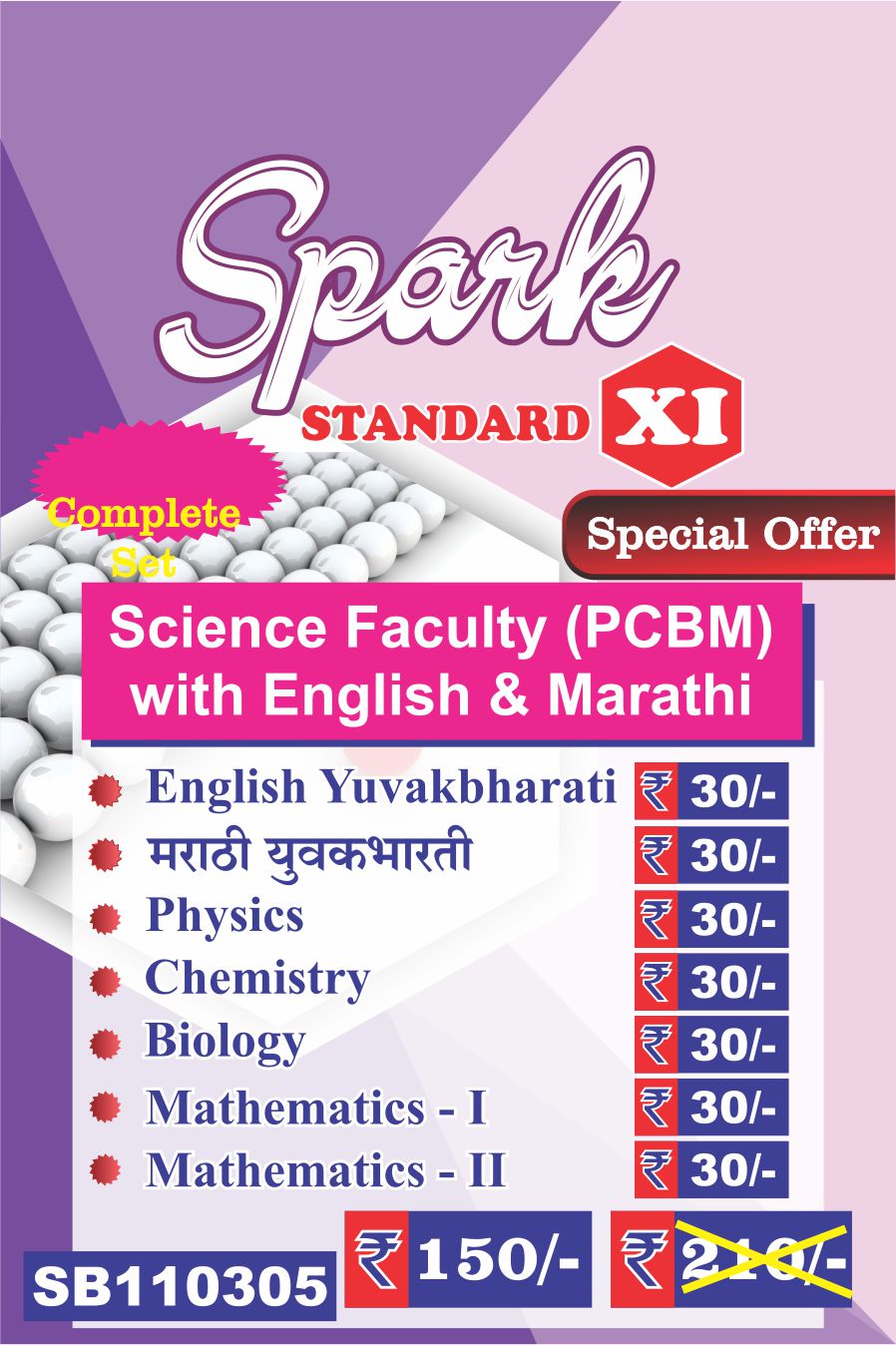 The Spark Science Faculty (PCBM) with English & Marathi complete set for Standard 11 is prepared as per the latest Maharashtra State Board (HSC) syllabus. This set is designed for students who want full coverage of science subjects along with language support.