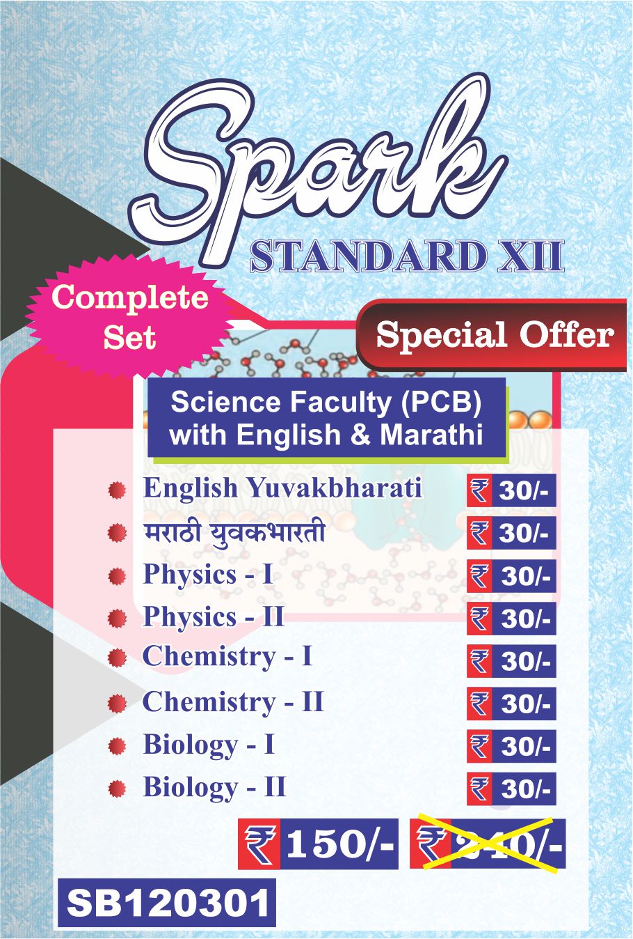 Spark Standard XII – Science Faculty (PCB) with English & Marathi (Complete Set) is a complete and well-planned study combo specially designed for Class 12 Science students. This set is ideal for PCB stream learners who want strong preparation with all major subjects included in one pack. It helps students study systematically and stay focused throughout the academic year.