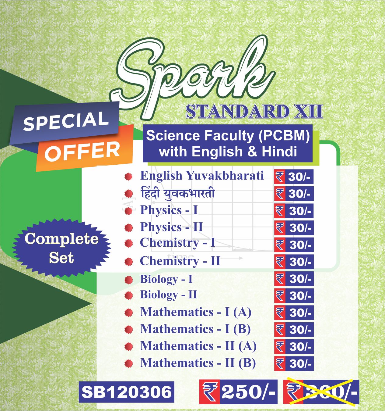 **Spark Standard XII – Science Faculty (PCBM) with English & Hindi | Complete Set** is a full syllabus study combo made specially for Class 12 Science students. It is a perfect option for students who want all main subjects in one pack for regular study, revision, and board exam preparation.